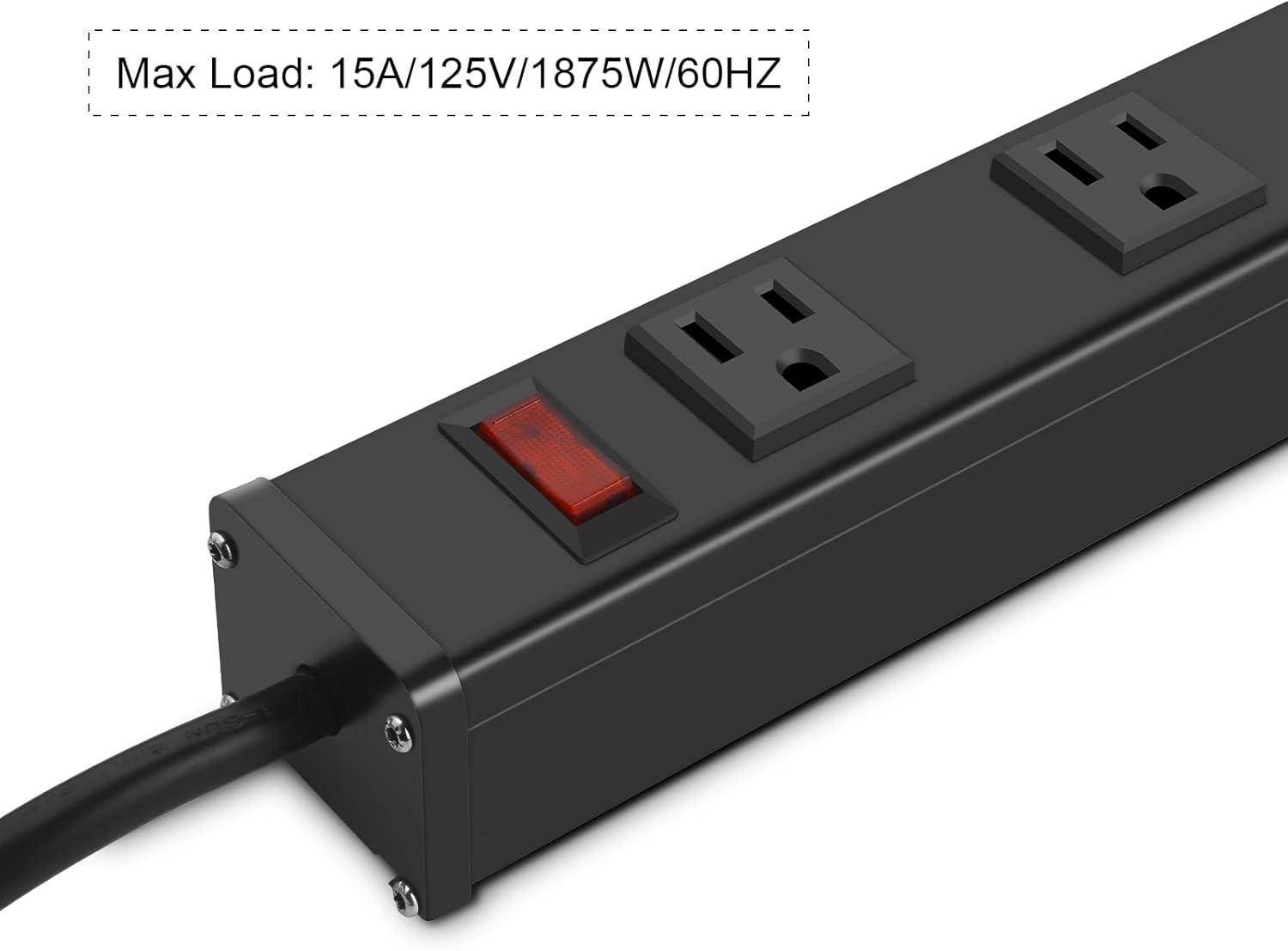 Heavy Duty Metal Power Strip, Equipped with 15A high current, Max: 60Hz/125V /1875W.