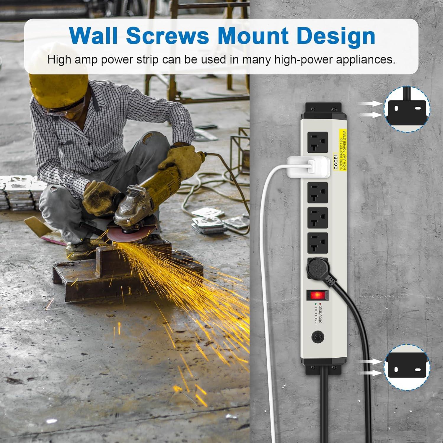 Wall mount design, the power strip can be mounted on a wall or desktop using screws. Perfect for the garage tool box.