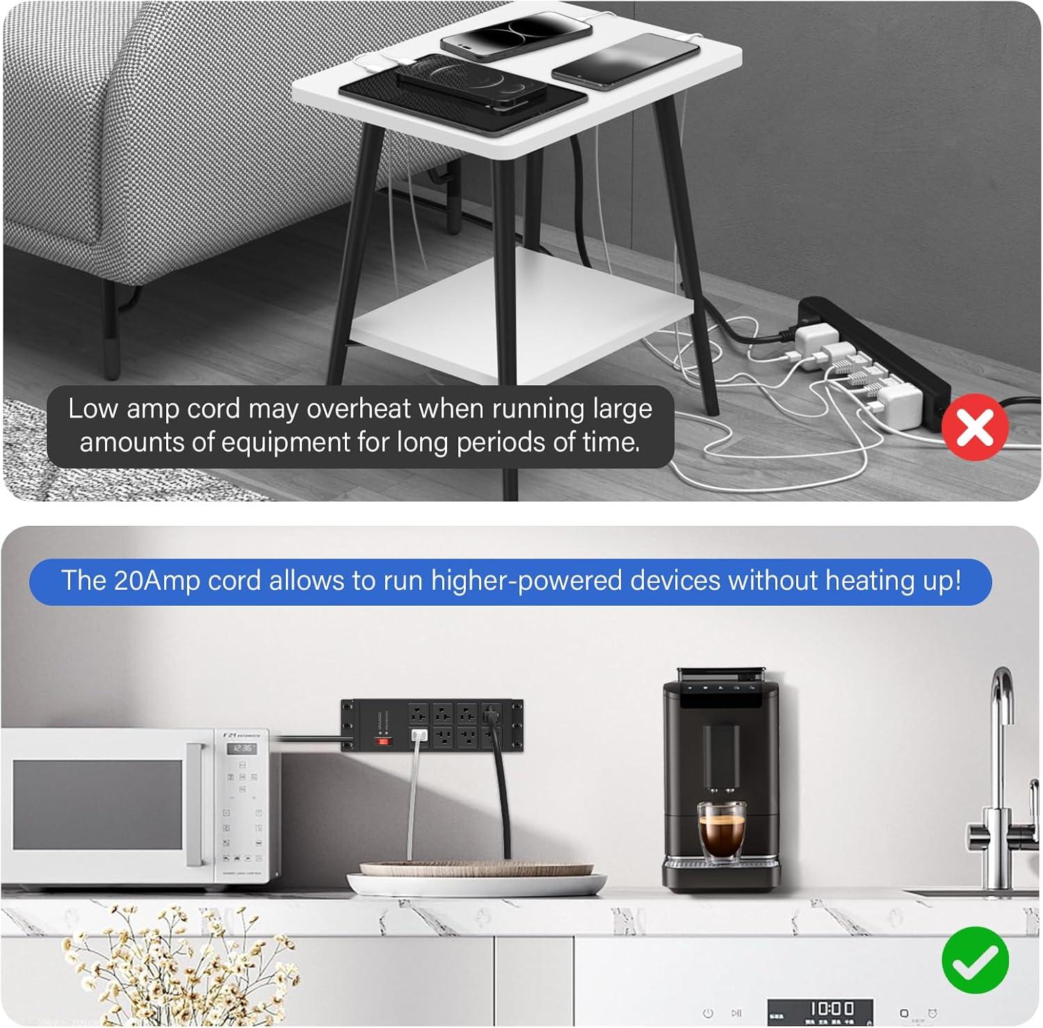 CCCEI 2PCS Heavy Duty Power Strip Surge Protector 20 AMP, 8 Outlets 12 Gauge Shop Garage Metal Multiple Outlets, 15 FT Extension Cord 5-15P Adapter High Amp 6-20R T-Slot 20a for Appliance Grey.(Black)