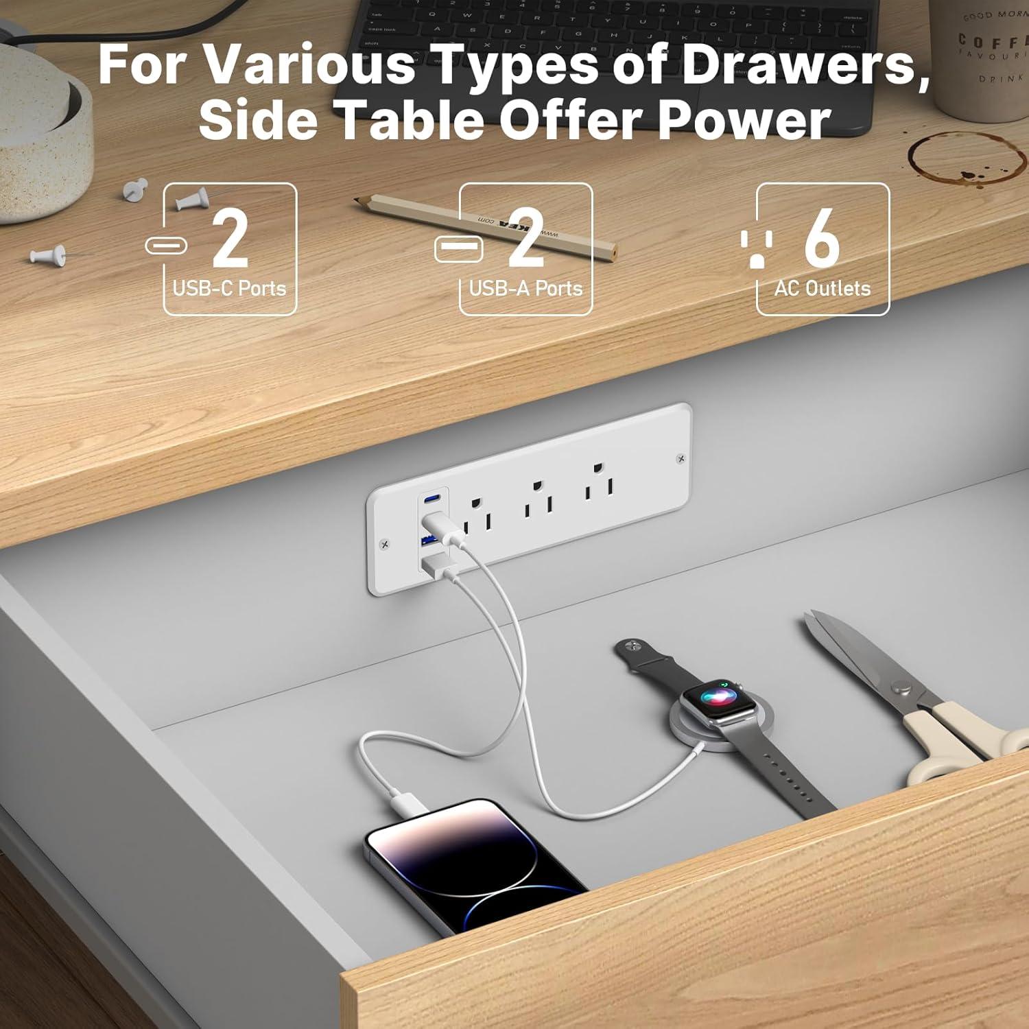 Dual side compact recessed power strip built in 6 outlets and 18W QC 3.0 USB A and 20W PD 3.0 USB C, You'll get twice as many power ports in the same space! Also reduces the number of power strips under your desk and helps manage cables.