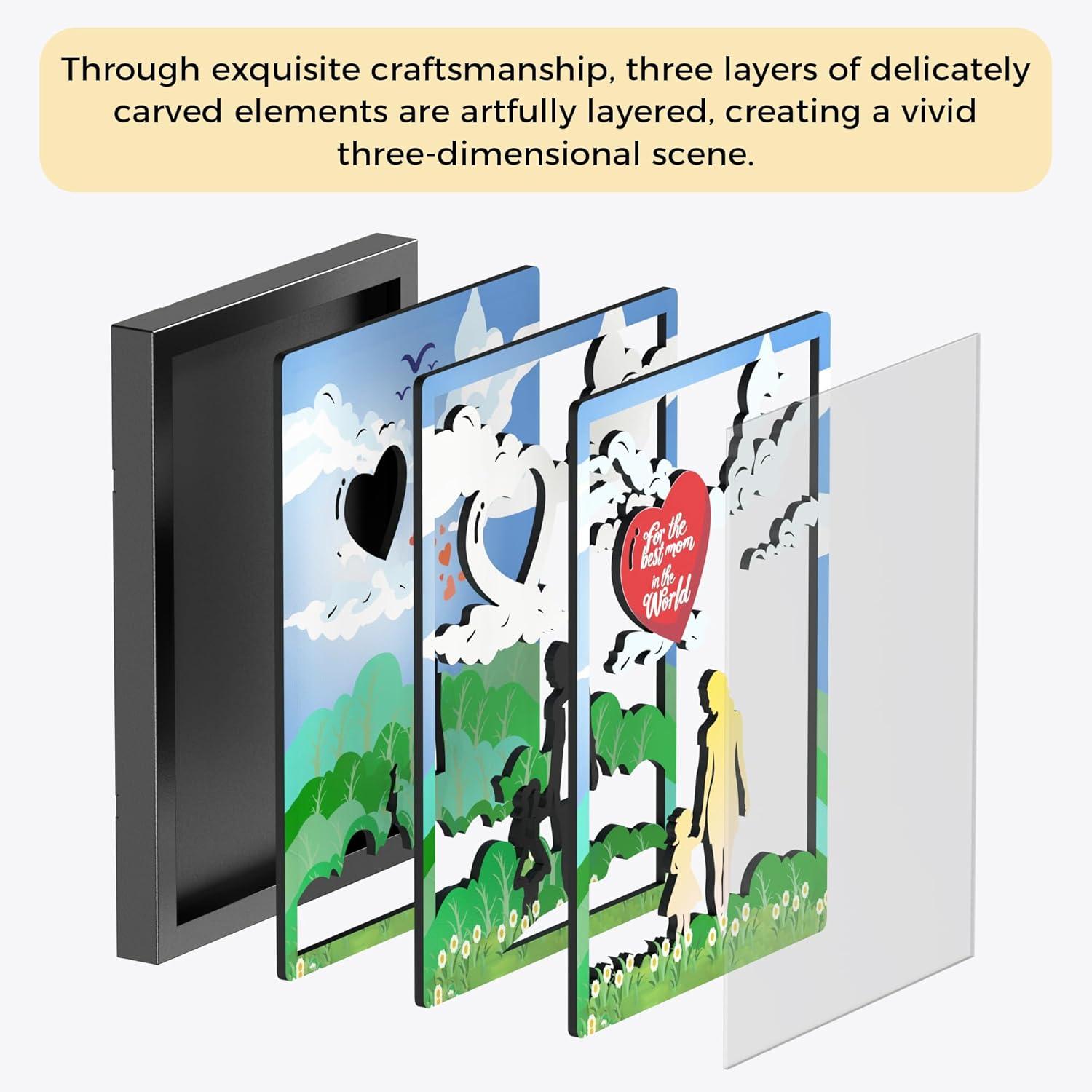 A framed artwork artwork that intricately assembles diverse elements through three-tiered carving to craft a multi-dimensional layered lovely scene.