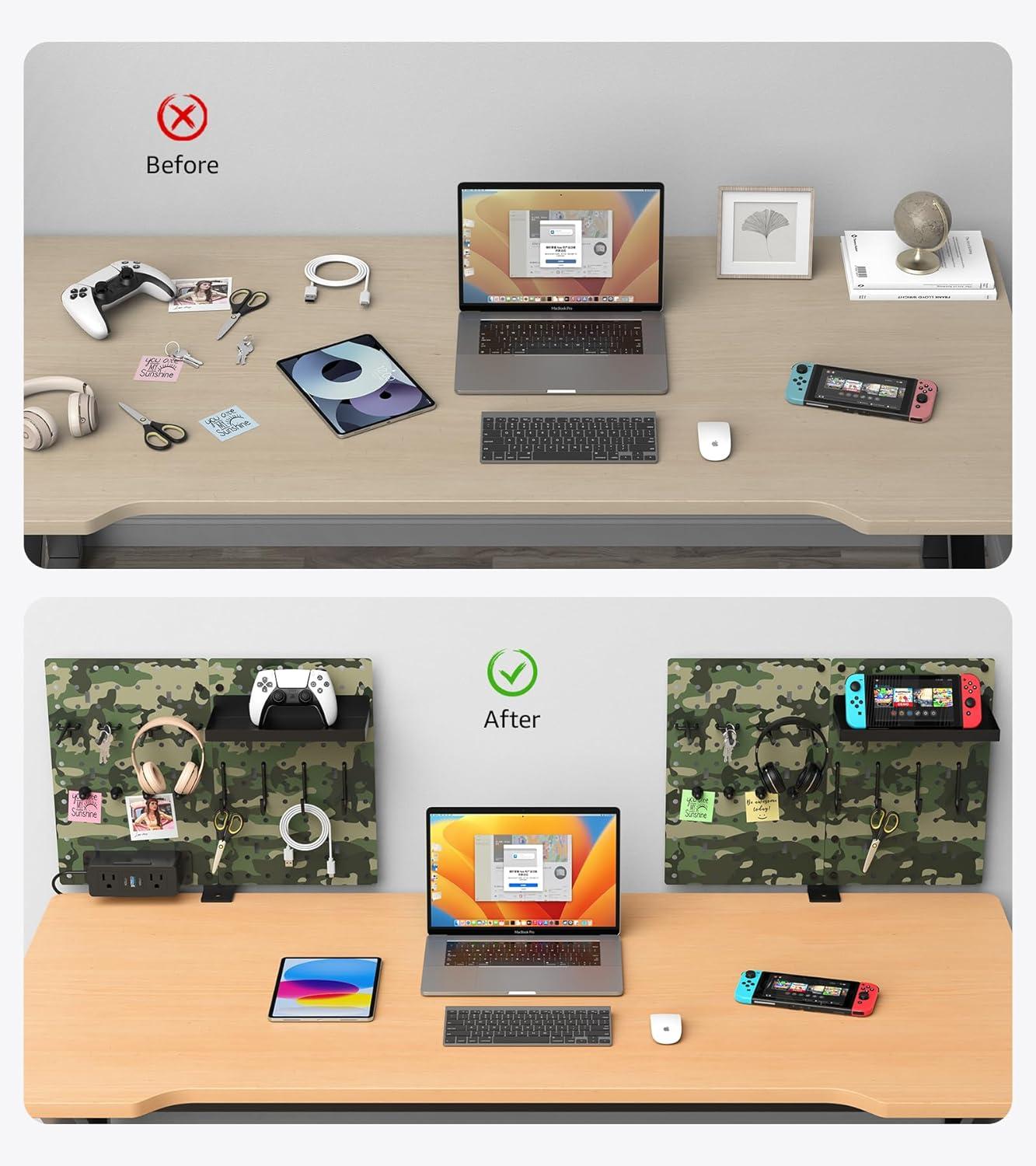 Office table decor and privacy protection, with the modular setup, you can do DIY to connect multiple pegboards into one large divider for added storage while protecting your privacy. Desktop edge mounting compatible with up to 2.3 inch thick desktop edges.