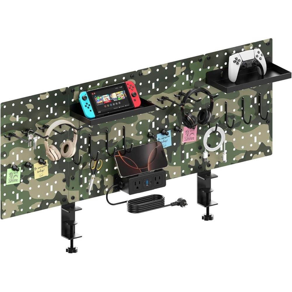 CCCEI Modular Pegboard Desk Organizer and Storage, Gaming Office Supplies Shelf Accessories with Outlets and USB, Metal Privacy Panels Peg board Deco Clamp on Table, Gifts for Men, 6FT.(6FT Cord)