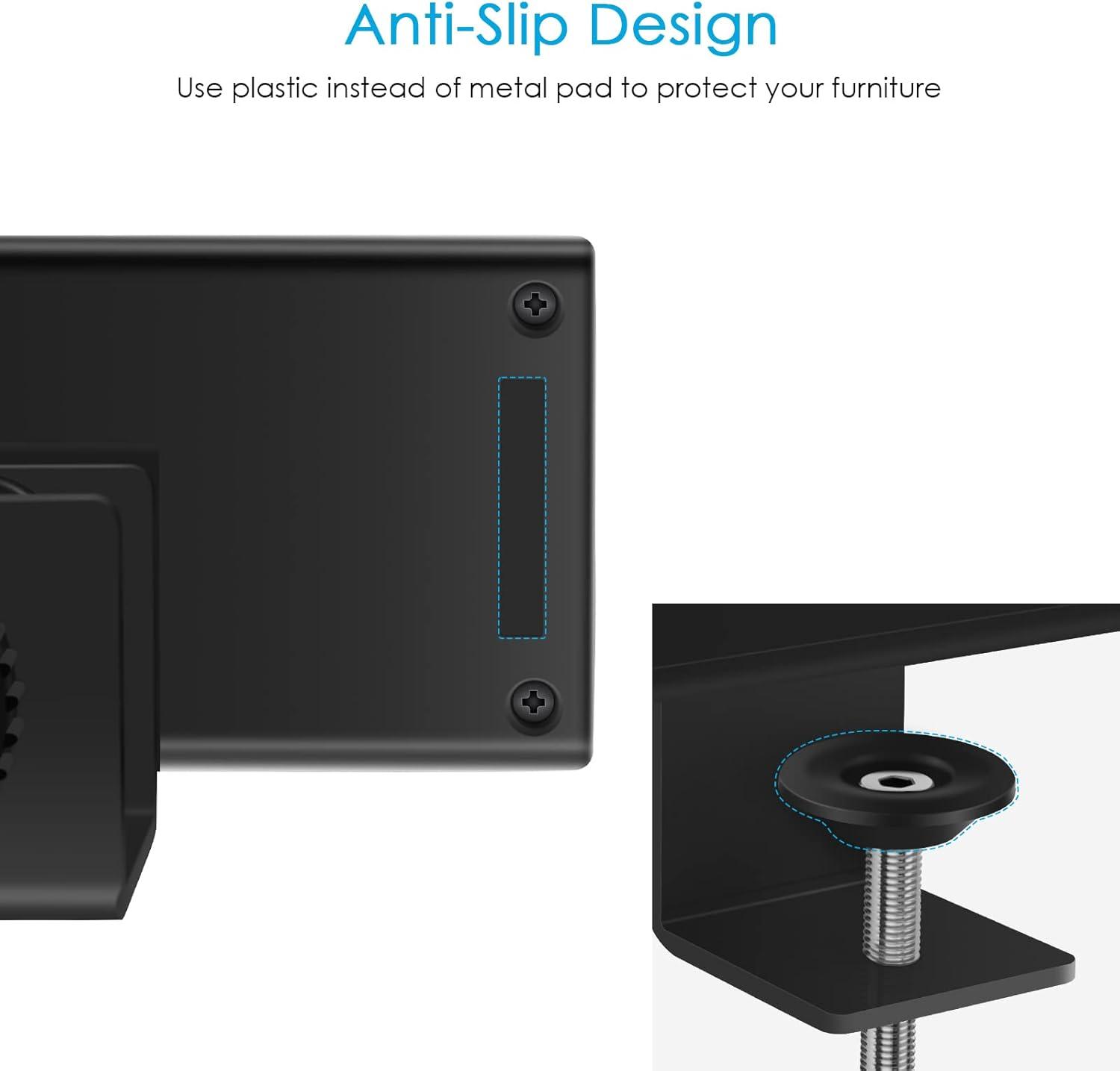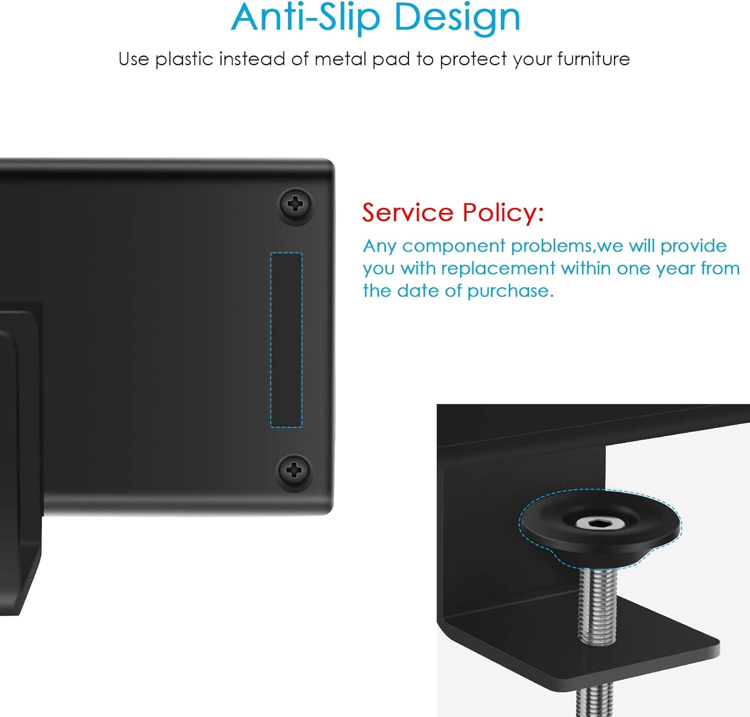 Sophisticated Design: Use plastic instead of metal pad to protect your furniture, The table need to keep a distance of 0.4″ from the wall and allow to clamp the desk edge maximum is 1.6″.