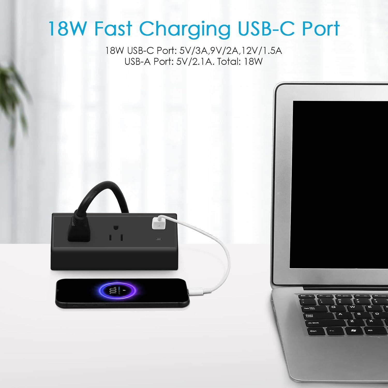 Fast Charging Desk Power Strip: with 18W USB-C Port, it is a great add on to the desk and configured with USB-A, USB-C ports and 2 outlets to provide power to everything connected from the desk.