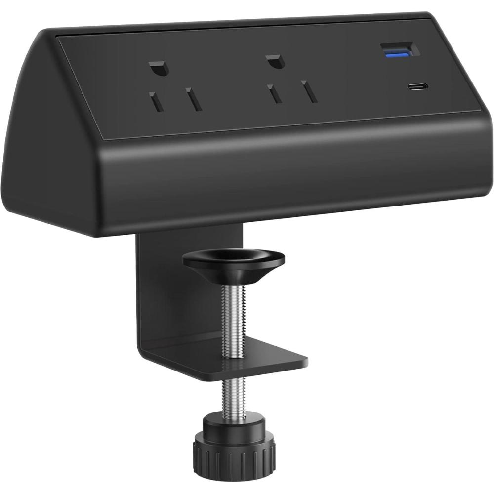 Desk Clamp Power Strip: No screws required, don't need to punch holes in the table, great help to organize your power cords, does not require much space and don't worry about the security issues.