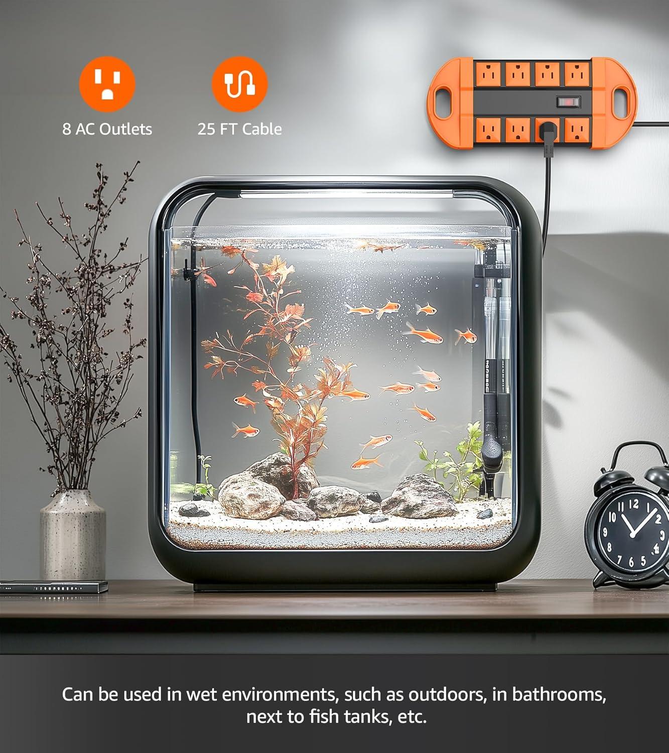 Outdoor power strip weatherproof with 8 outlets, water resistant and GFCI design, dual protection. Can be used in wet environments and splash water and work even in the heavy rain. The ends are designed with a wire-wrap feature to help you store it better when not in use.
