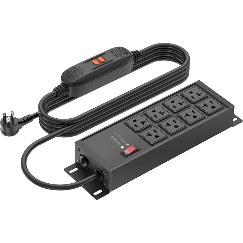 GFCI heavy duty power strip with multiple outlets and 20 amp switch. Overload and grounding protection. It comes standard with a three-pin NEMA 5-15P plug and is equipped with a high amp power cord. Suitable as outlet extender for various scenarios.
