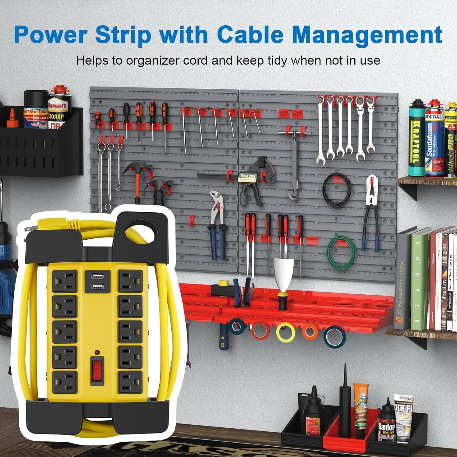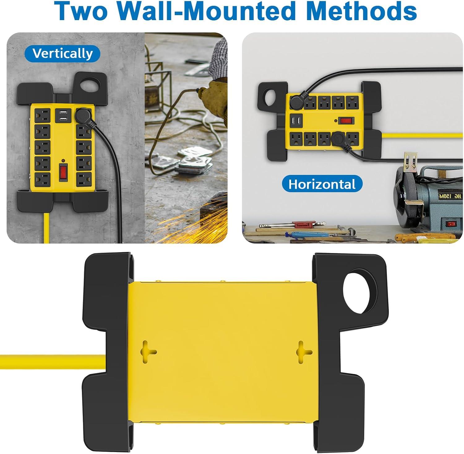 Heavy duty power strip with compact 10 outlets and 2 usb ports, grey metal housing, wall mountable, perfect for hooking up all the gadgets at work. Can handle multiple electronics and power tools at once.
