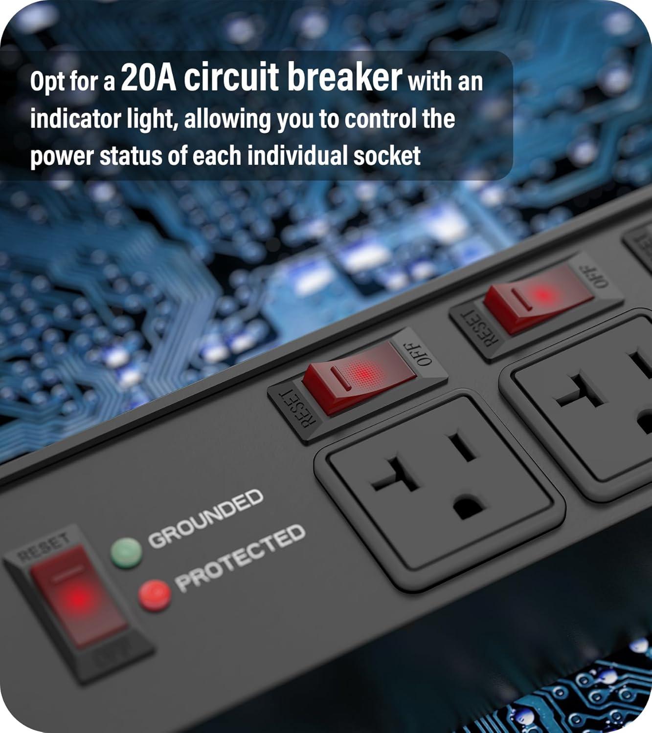 12 gauge 12ft heavy extension cord, rating: AC 20A 125V 2500w. A dedicated 20A circuit breaker allows you to control the circuit independently, eliminating the need to unplug devices or cut off the entire power supply.