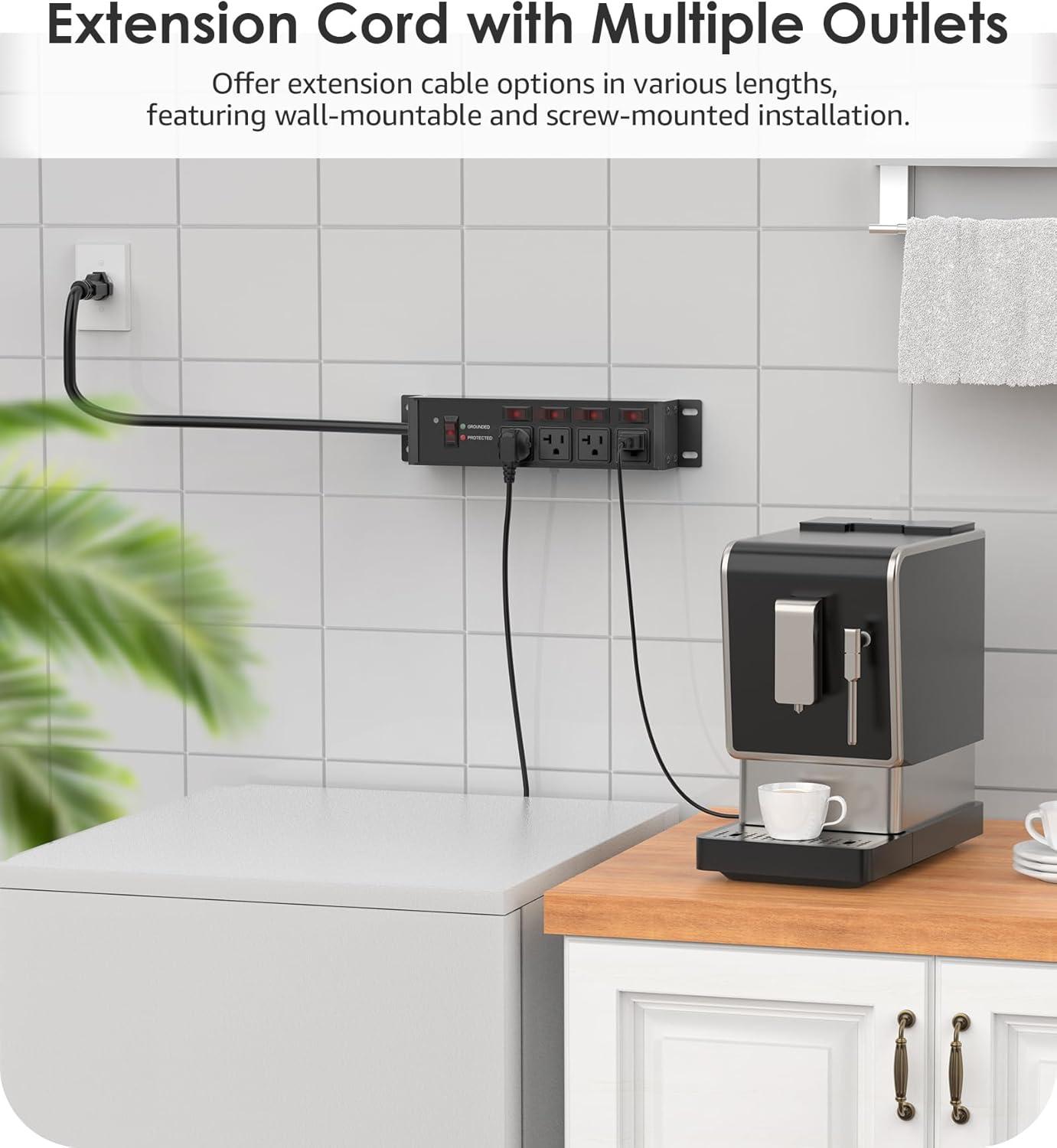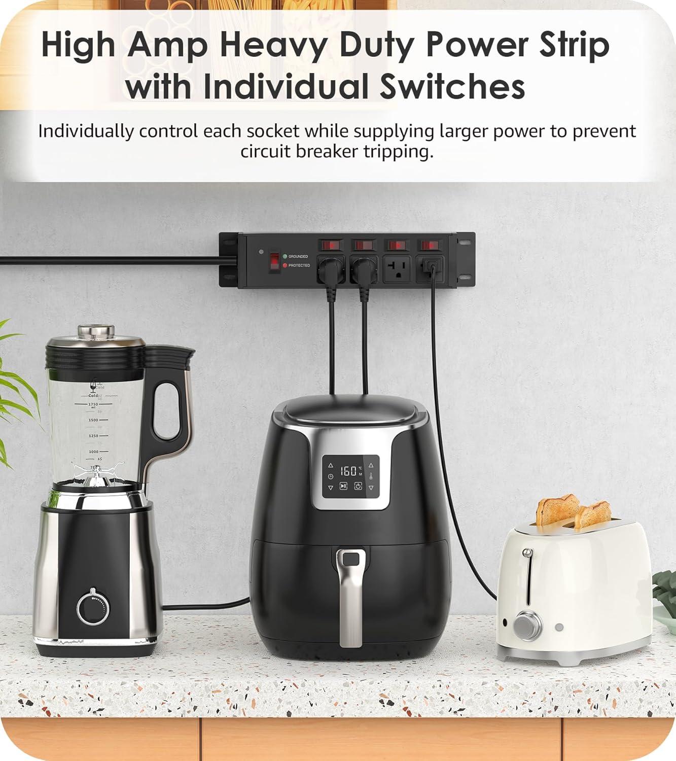 CCCEI Heavy Duty Surge Protector Power Strip 20 Amp Individual Switches. 12FT 12 Gauge Extension Cord with Multiple Outlets. Kitchen, Garage, Shop, Industrial Wall Mount Electric Extender, Yellow.(Black)