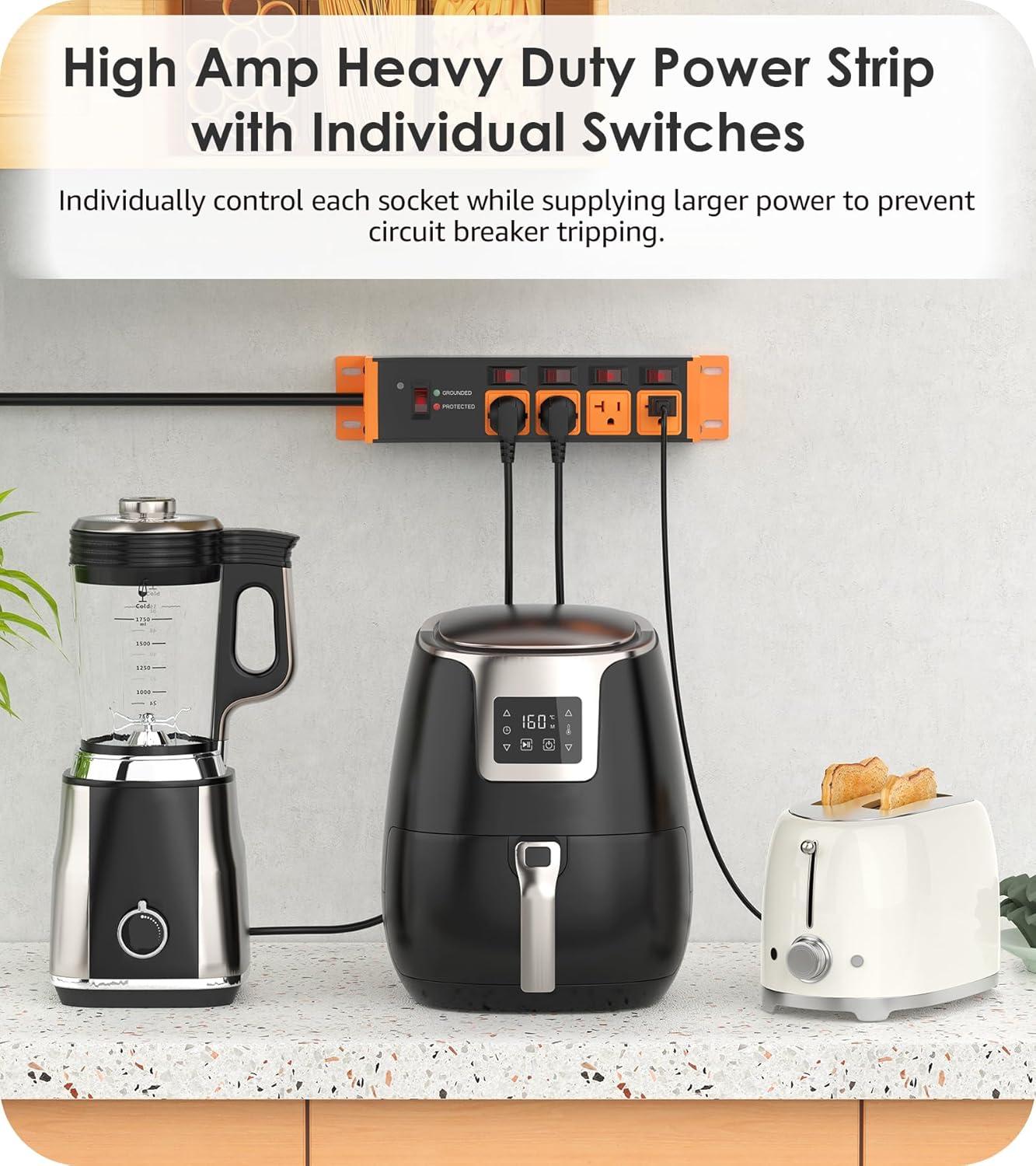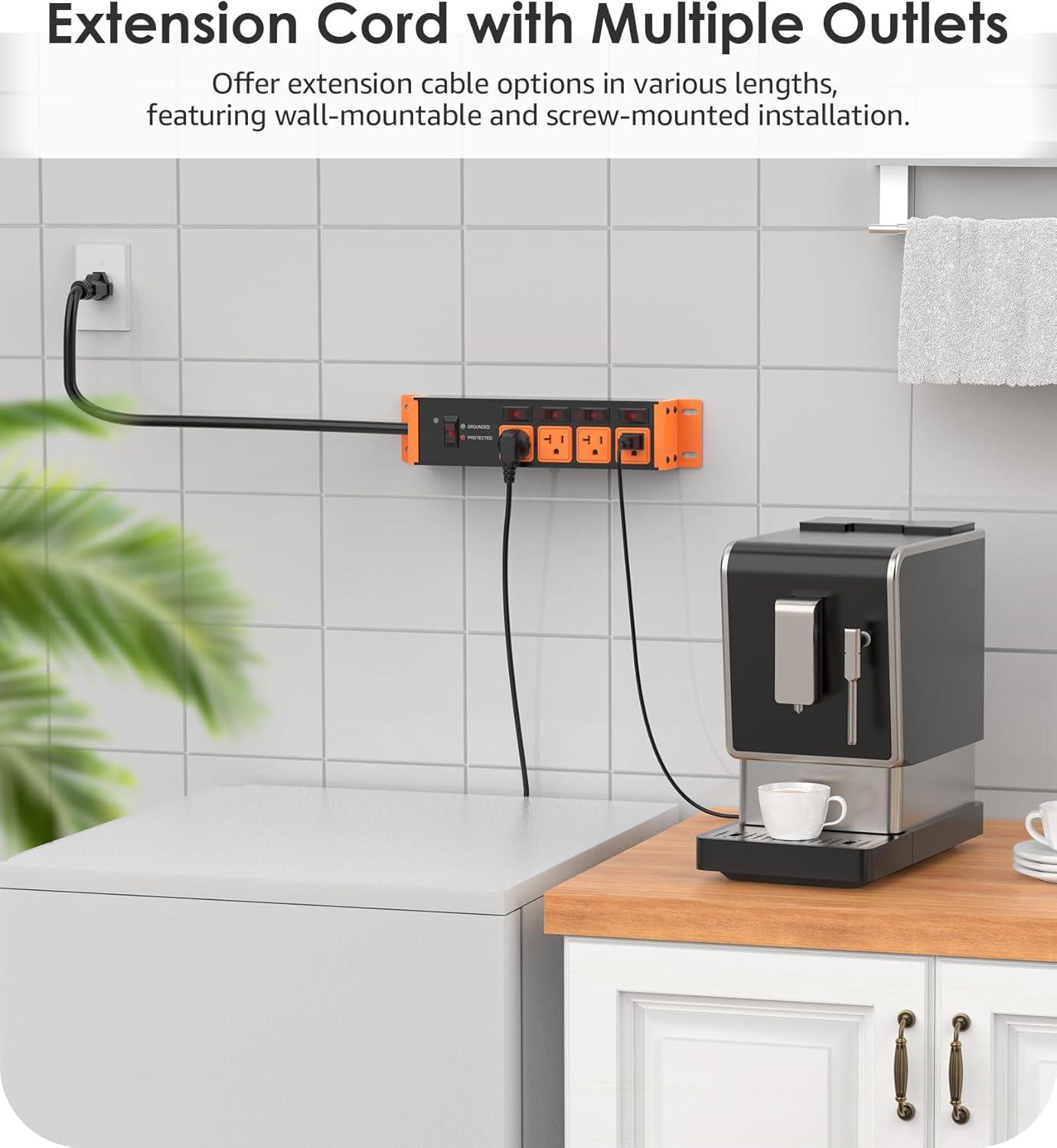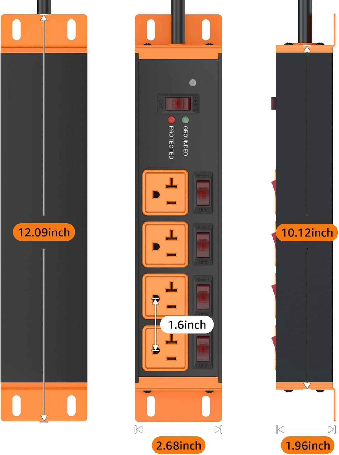 imageCCCEI Heavy Duty Surge Protector Power Strip 20 Amp Individual Switches 12FT 12 Gauge Extension Cord with Multiple Outlets Kitchen Garage Shop Industrial Wall Mount Electric Extender YellowCosmic Orange