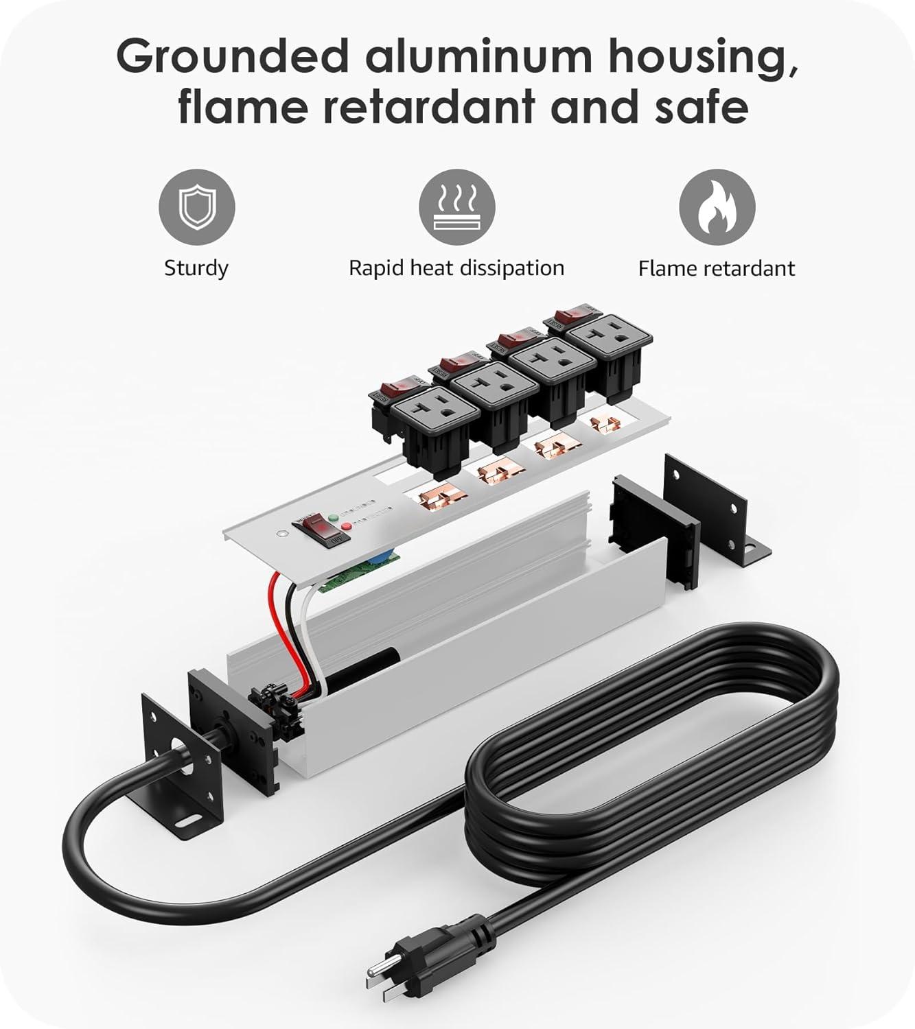 Wall screw mount design, sturdy and durable, ETL list 5019543, thickened metal shell, fireproof, well made power strip and great for a workshop garage shop, Please protect if used as outdoor power strip.
