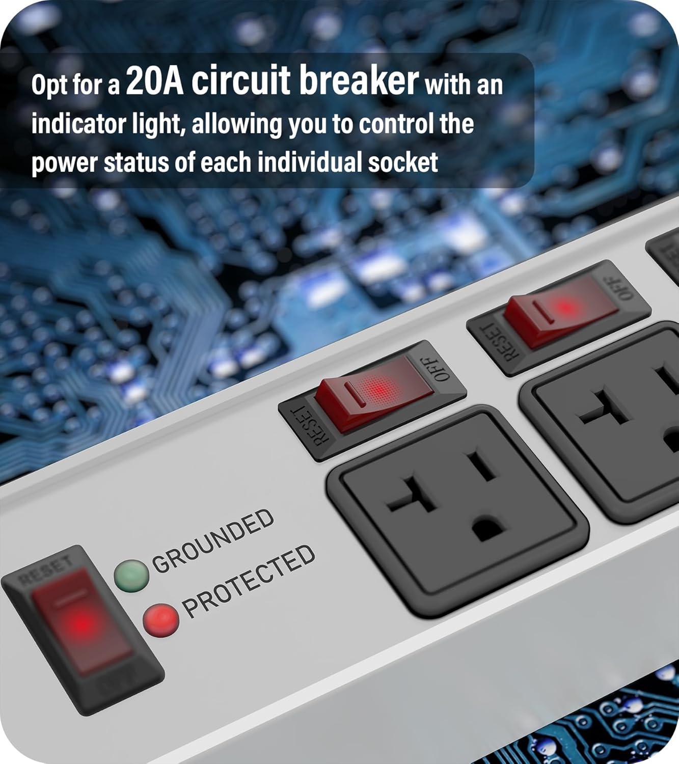 12 gauge 12ft heavy extension cord, rating: AC 20A 125V 2500w. A dedicated 20A circuit breaker allows you to control the circuit independently, eliminating the need to unplug devices or cut off the entire power supply.