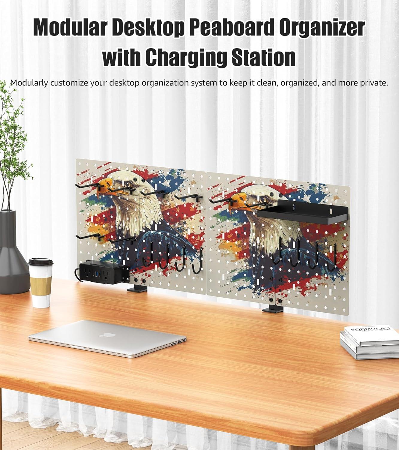 CCCEI Modular Pegboard Desk Organizer and Storage, Gaming Office Supplies Shelf Accessories with Outlets and USB, Metal Privacy Panels Peg board Deco Clamp on Table, Gifts for Men, 6FT.(6FT Cord)