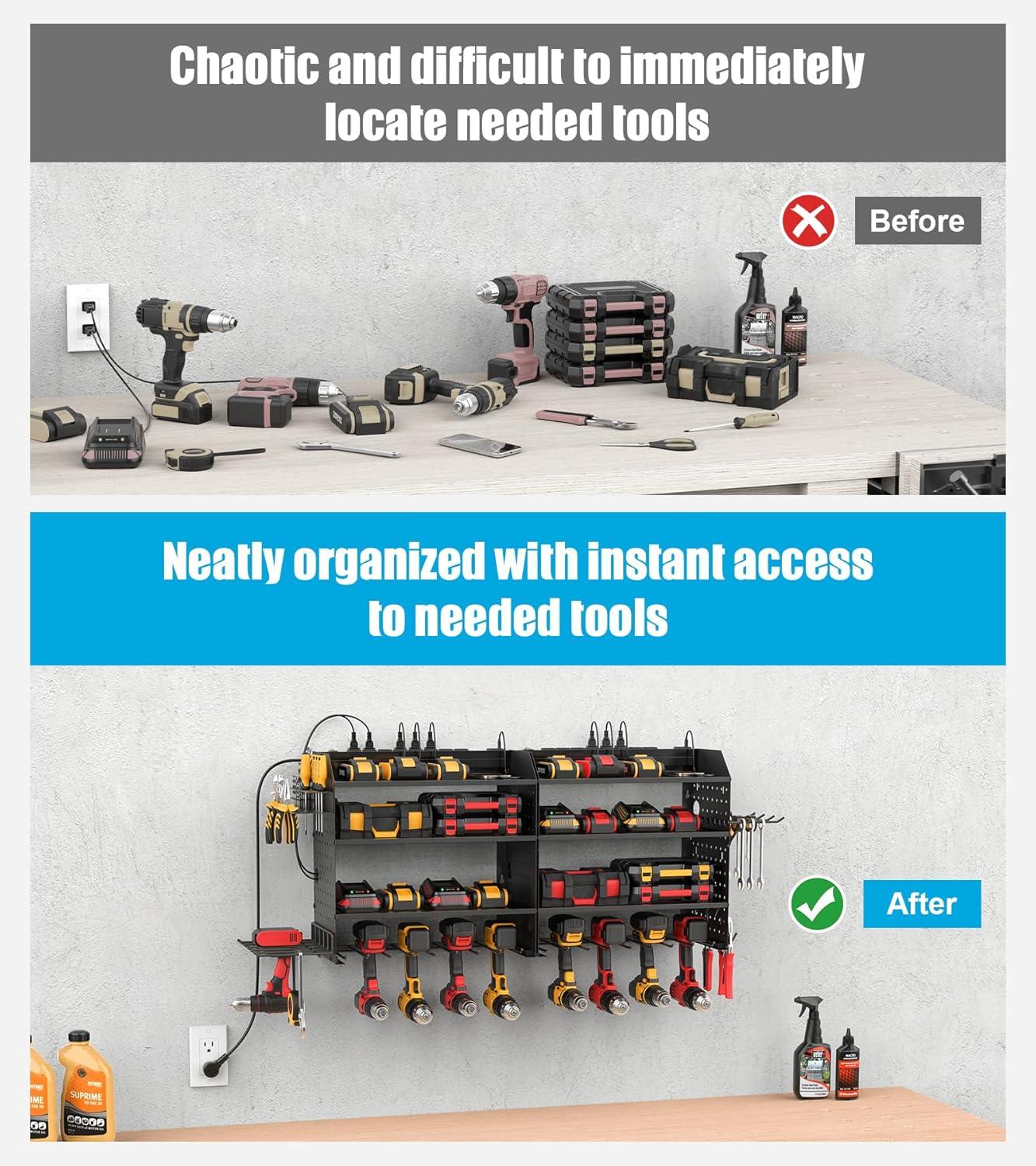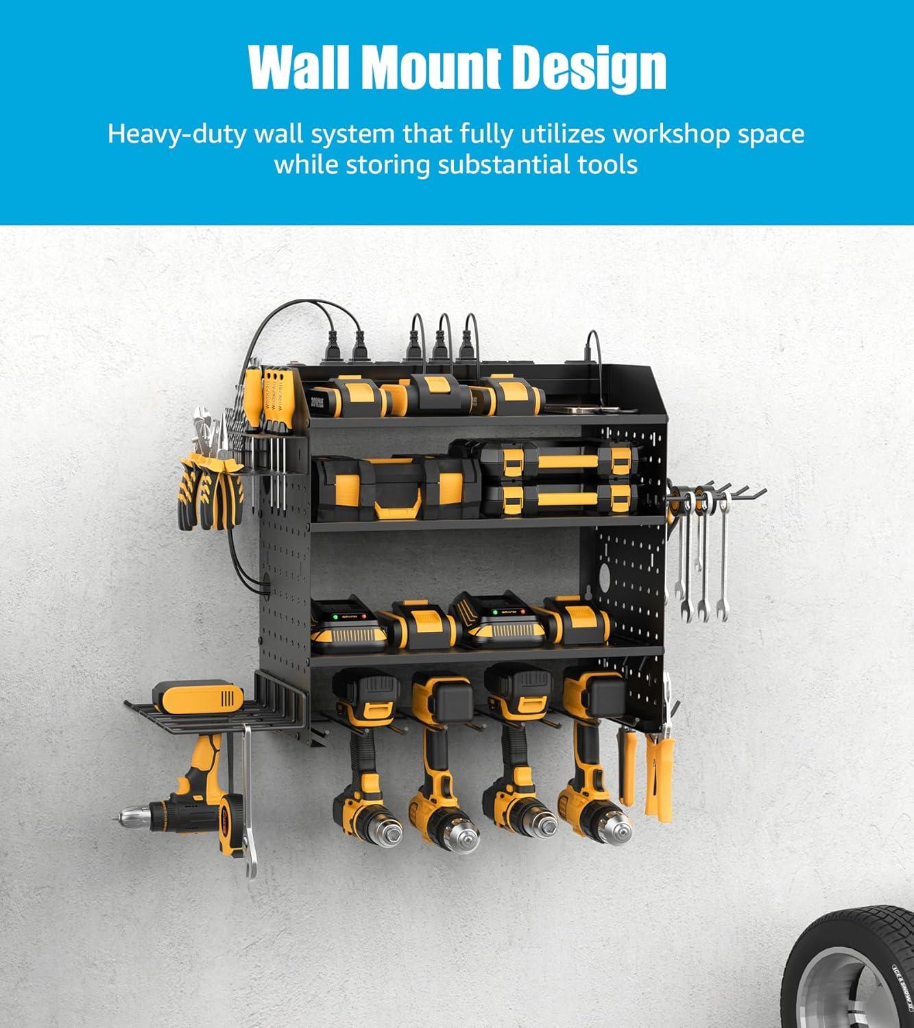 CCCEI Modular Power Tools Organizer with USB Charging Station, 4 Layer Drills and Battery Storage Wall Mount, Garage Shop Organization, Anniversary, Birthday, Gifts for Men, Father, 6FT Cord, Black.(Black)