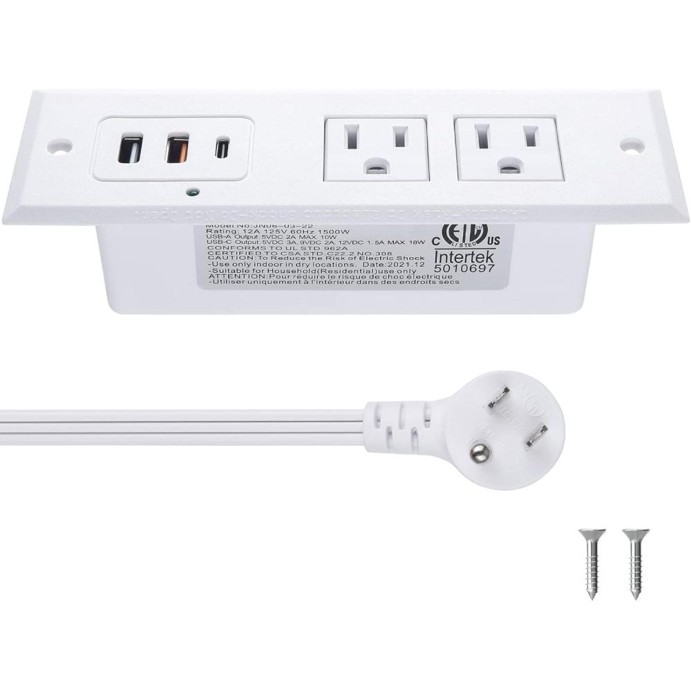 CCCEI Recessed Power Strip with 20W USB C Port, Fast Charging USB A Port Desk Outlet, Furniture Hidden Charging Station for Side Table, End Table, with 6FT 45 Degree Flat Plug Extension Cord, Black(45W_White)
