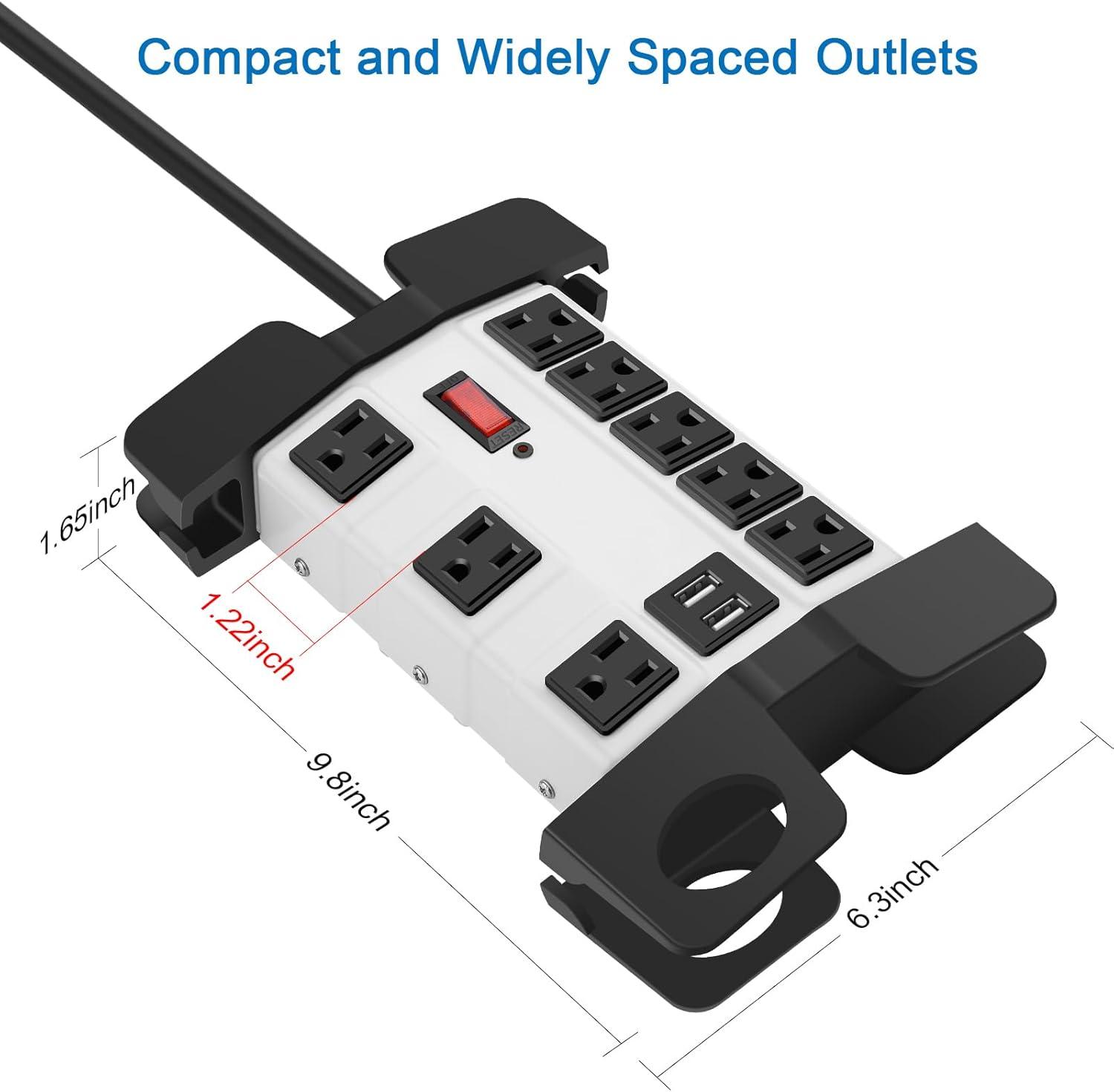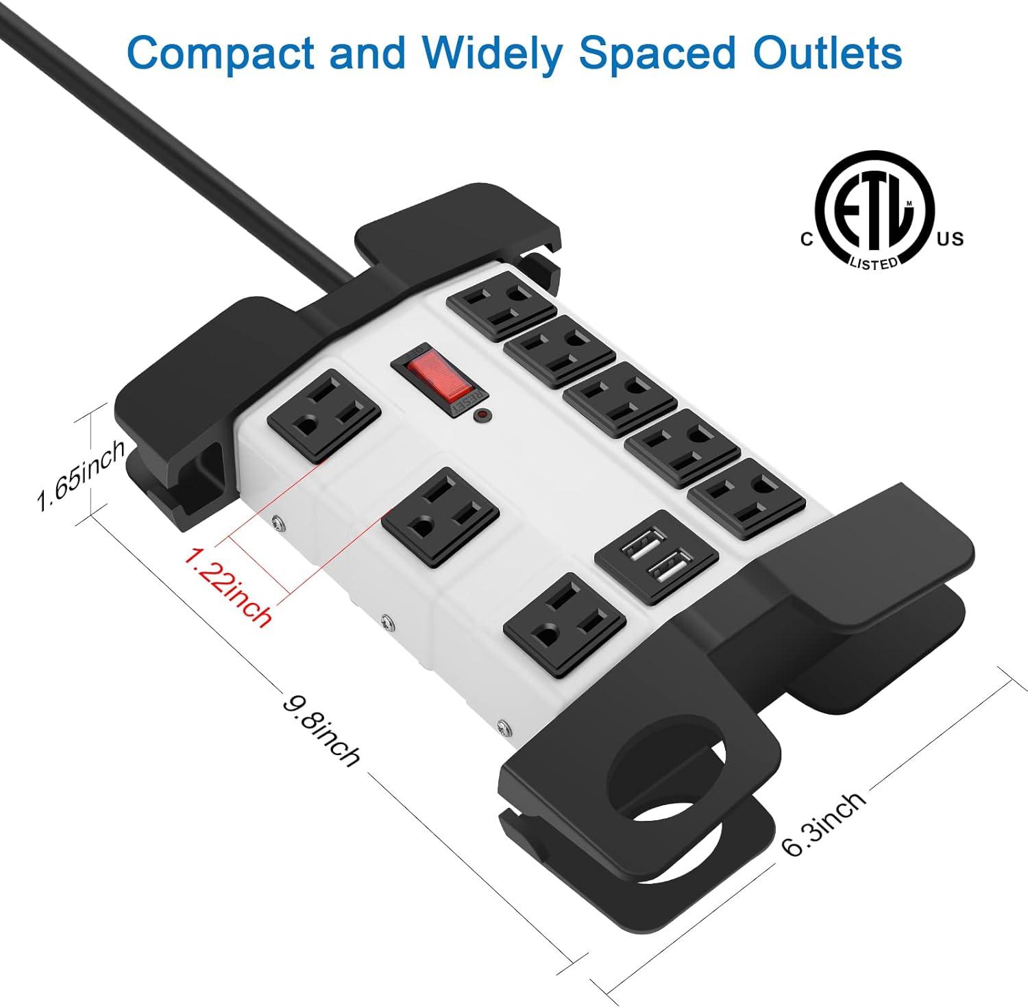 Compact industry metal power strip with 8 outlets with 2 USB ports, sturdy and durable yellow aluminum alloy.