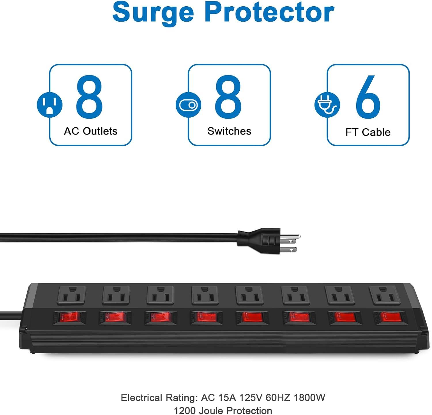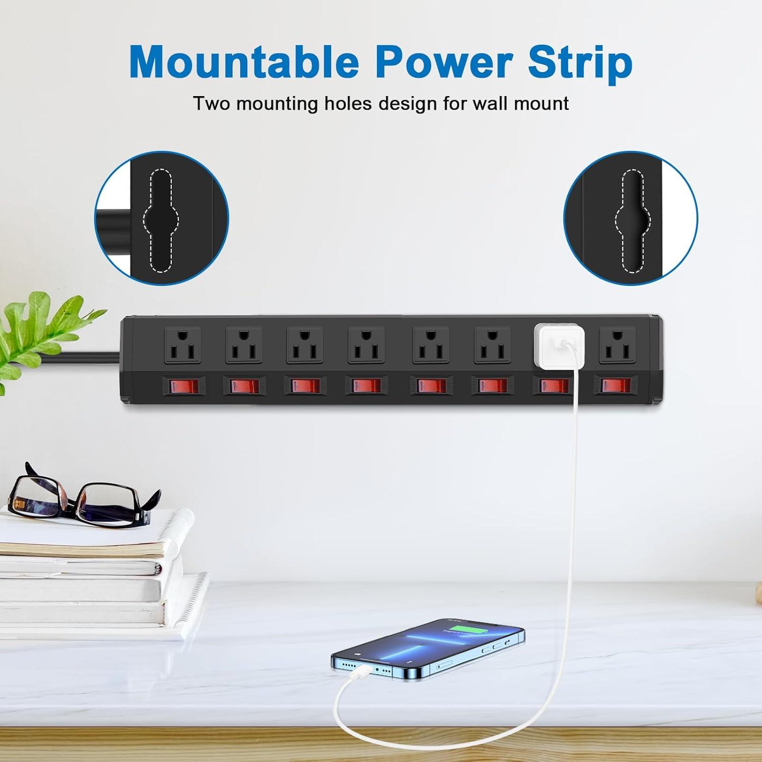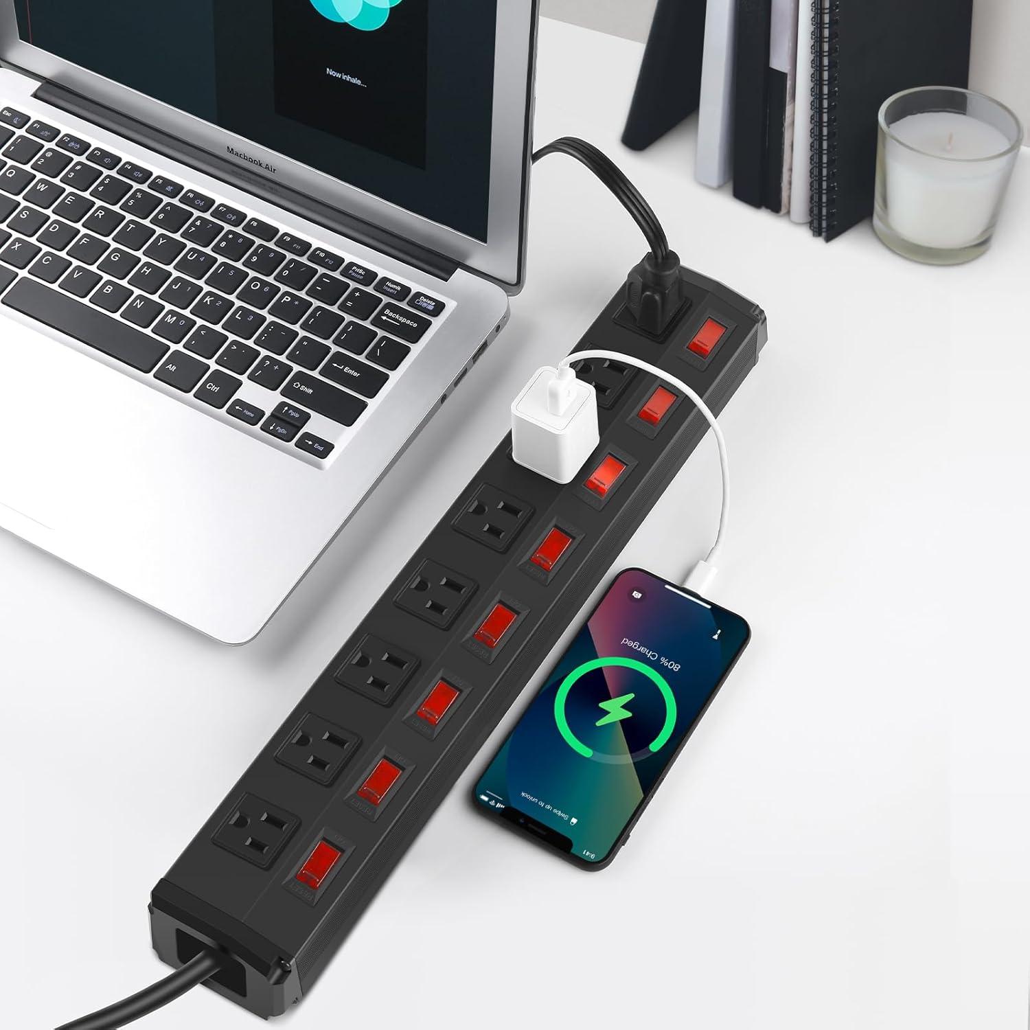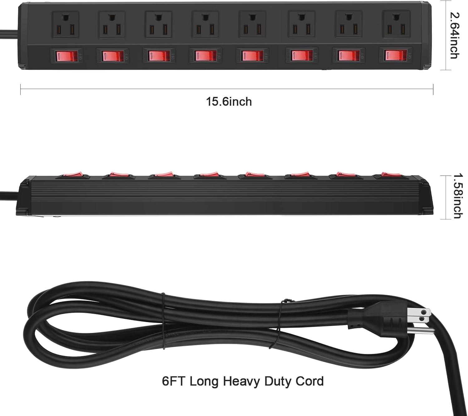 Compact heavy duty metal power strip with multi-plug and multiple switches, sturdy and durable aluminum alloy.