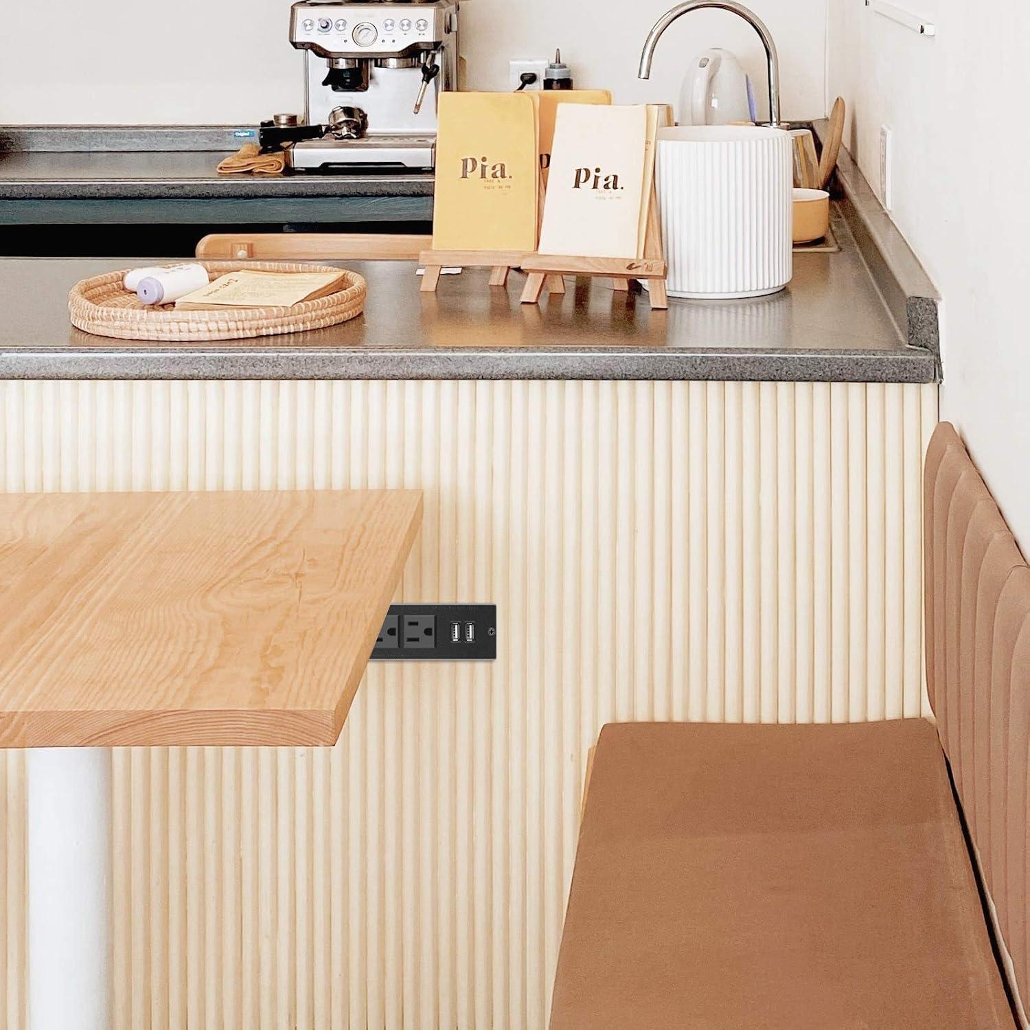 Desk outlet with USB output: 5V/2.1A, design for DIY furniture power outlet needs, desktop outlet for island cabinets, sofa, table. offer 120V/12A, 1440W output.